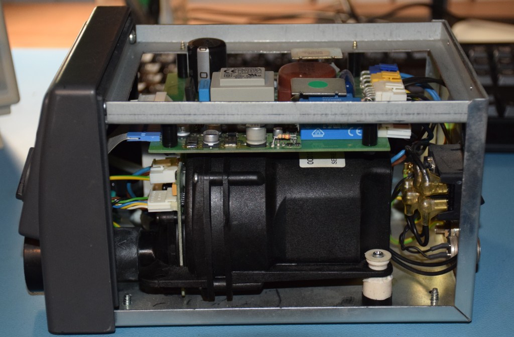 The base is arranged nicely in the top there is a power board, below there is the air blower unit and another unit for the suction port, fixed to the front panel is the control board.