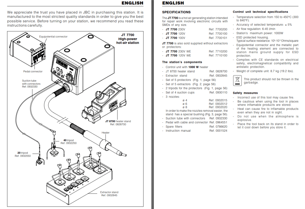 JBC JT 7700 is a nice base with great build quality and good specs. also the suction port which adds more to the functionality.